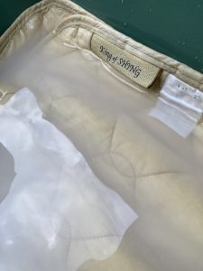 破れた個所をご自分でパッチワークして修理。何十か所もです。