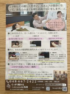 肩こり・首の痛み・寝付きの悪さなど、お一人おひとりの悩みに合わせて、専門スタッフがぴったりの高さや素材をアドバイスします。