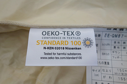 あと、「清潔」とは少し違いますが「エコテックス・スタンダード 100」という繊維製品の安全証明を取得しています。