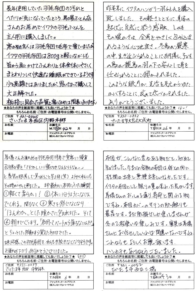 「イワタの羽ふとん暖かいで~す」お客様の声ご紹介