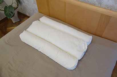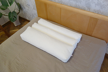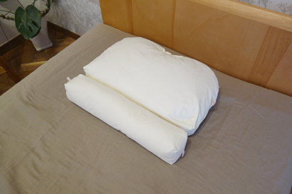 「頭」と「首」を支えているのはまくらだけではありません。 頸椎、脊椎、腰椎は S 字状につながっています。 つまり、「頭」と「首」は「まくら」と「敷寝具」の 2 つによって支えられています。 ですから、ご自分の現在使っているベッド、または敷ふとんと一緒に試すことで、あなたに合うまくらが見つかります。