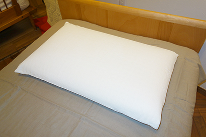 水鳥のスモールフェザーでできていますので、ふわふわのダウンともっちりとした弾力でやや硬めです。 沈み込みが少ないので「横向き寝の方」や「首がしっかり支えて欲しい方」におすすめです。